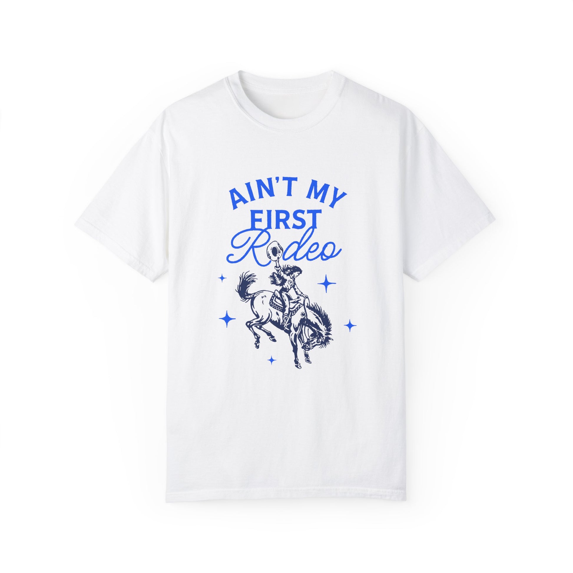 This Ain't My First Rodeo T-Shirt is the perfect addition to any country music lover's wardrobe. Inspired by Kelsea Ballerini, this Comfort Colors Tee exudes a laid-back, concert-ready vibe. It makes a great gift for her and is ideal for bachelorette parties or country concerts. The red color adds a pop of fun and excitement to any outfit.
