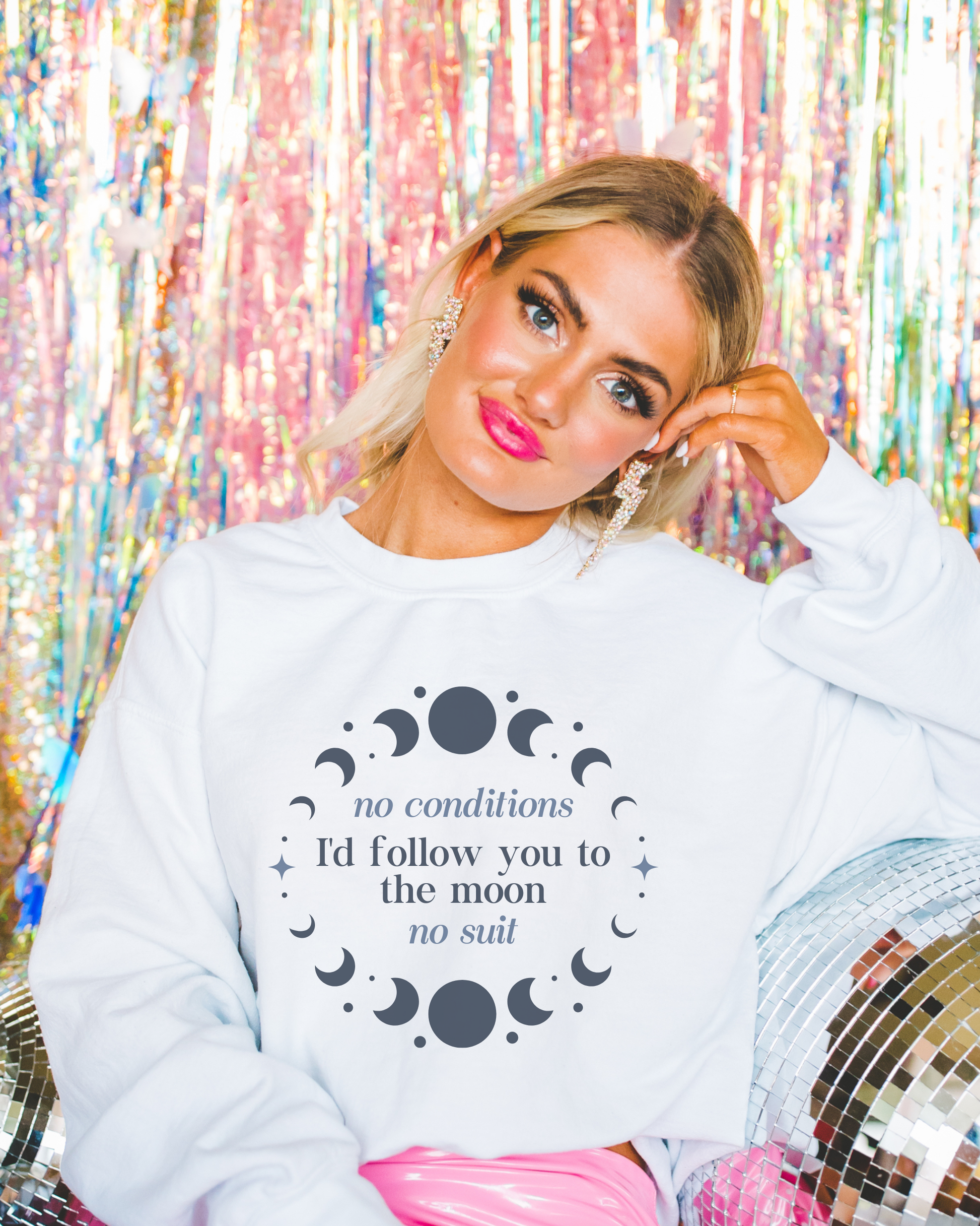 Embrace effortless style with this Follow You To The Moon No Suit sweatshirt, blending retro vibes with coastal cowgirl charm. Perfect for Kelsea Ballerini fans, this cozy pullover is a must-have for concerts, casual outings, or as a thoughtful gift for her.