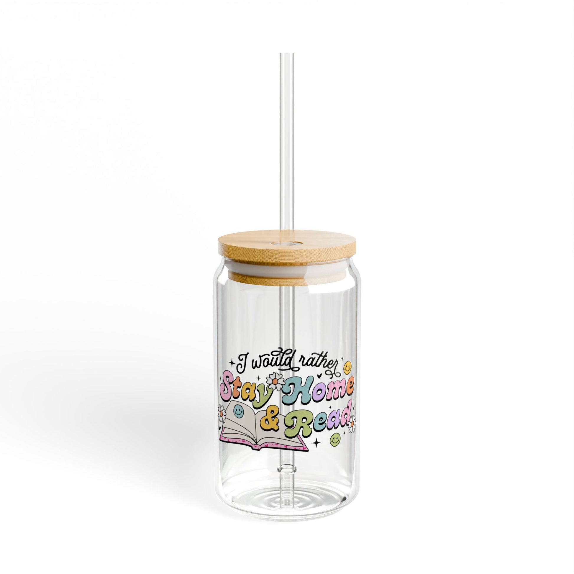 Embrace your cozy reading days with our "Rather Stay Home and Read" glass cup, a 16 oz glass can cup perfect for enjoying iced coffee while you dive into your favorite books. Featuring a stylish bamboo lid tumbler, this sipper glass makes an excellent gift for book lovers and a great addition to your Booktok collection. Whether you’re relaxing at home or savoring your next literary escape, this cup is a charming companion for every book enthusiast.