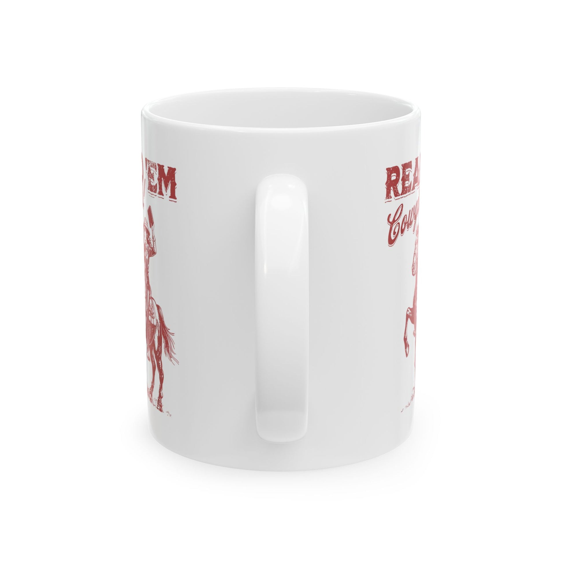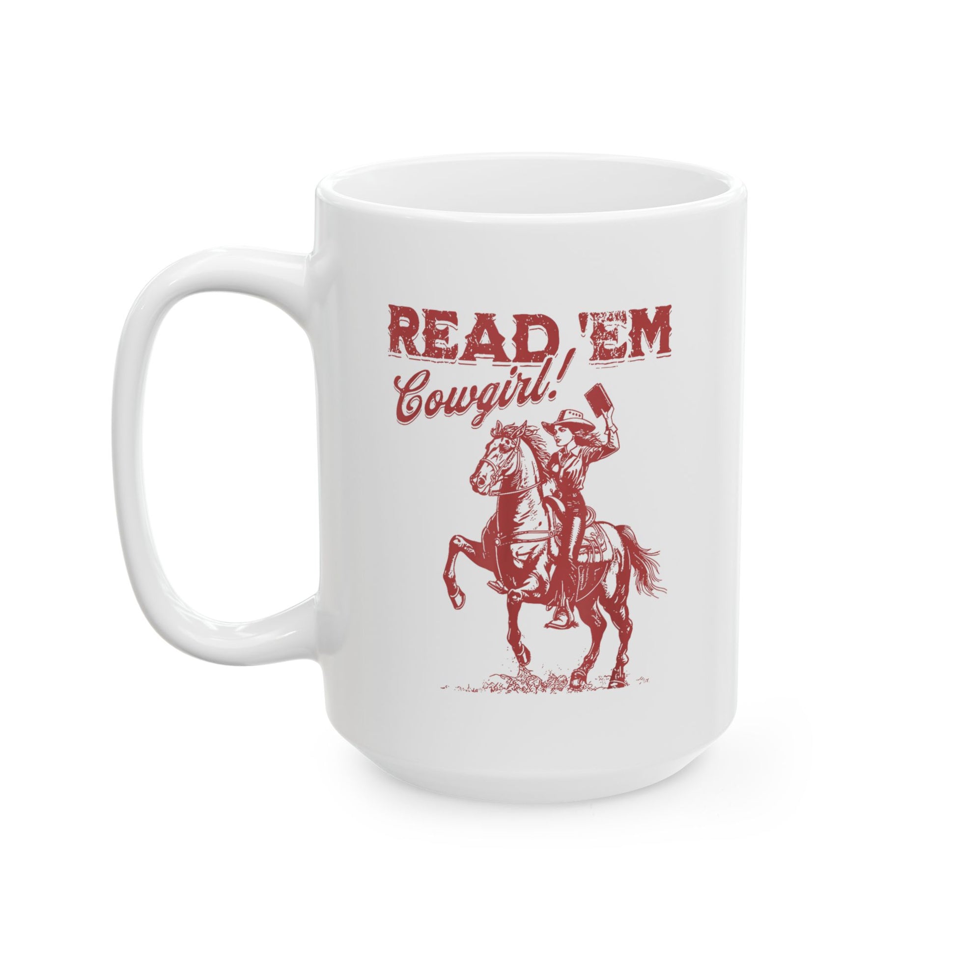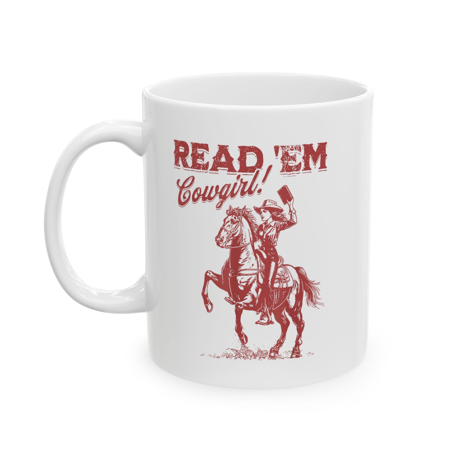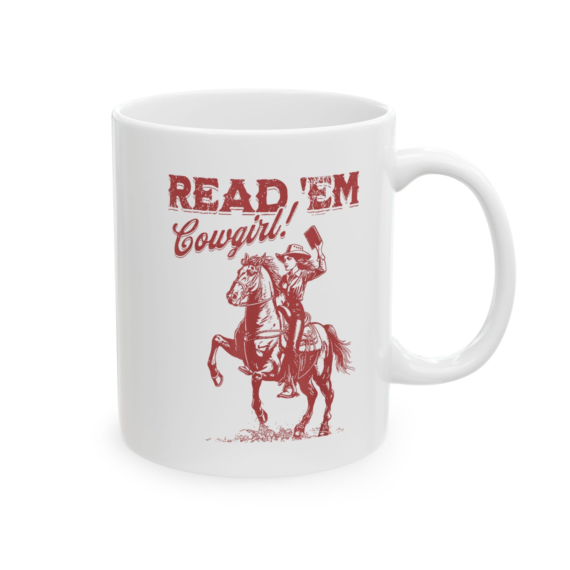 This "Read 'Em Cowgirl" mug is perfect for book lovers with a flair for the western aesthetic. A fun and playful gift for readers who enjoy both books and a bit of cowboy spirit.