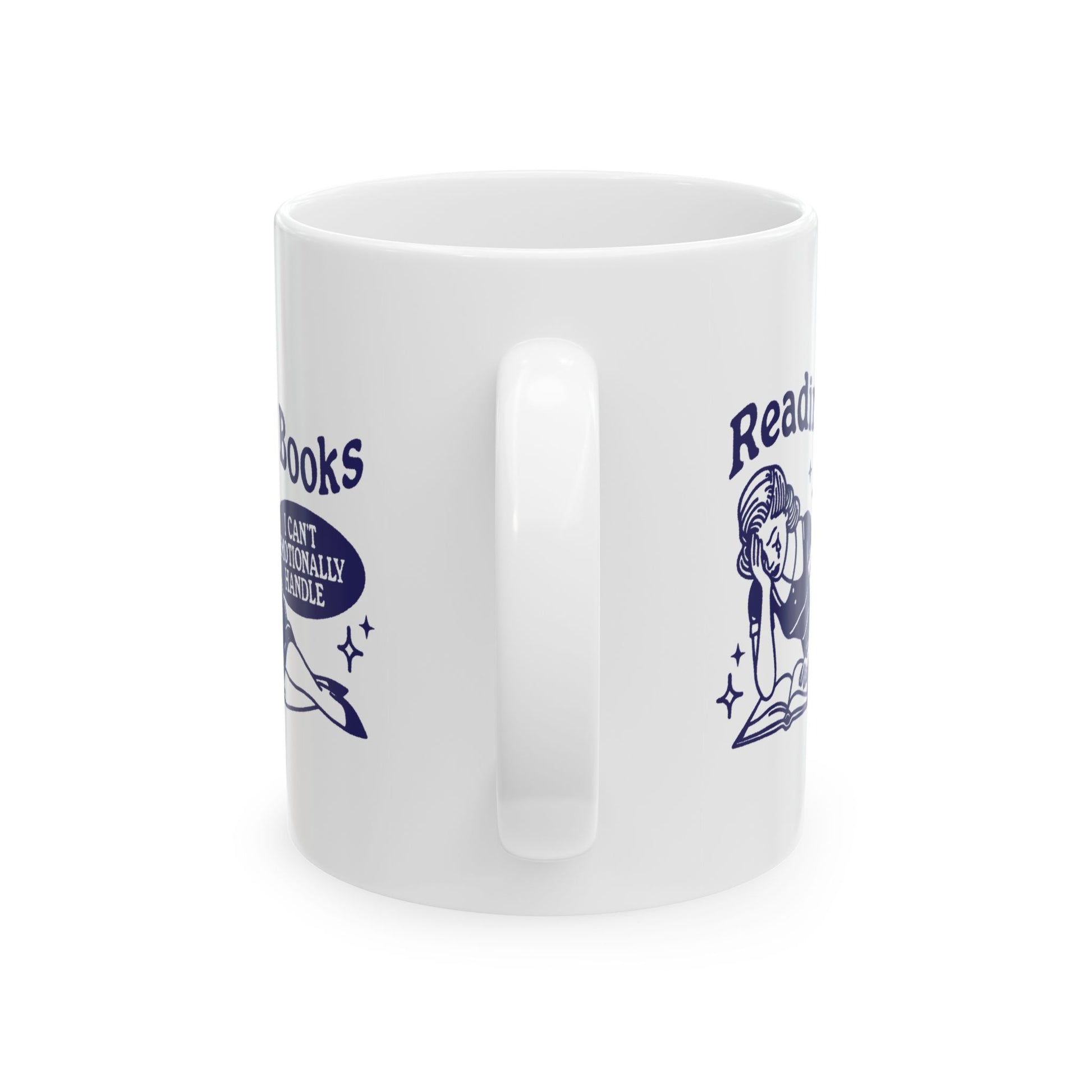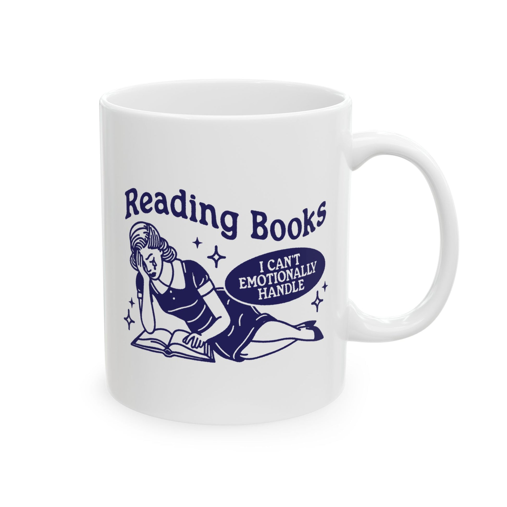 This "Reading Books I Can't Emotionally Handle" mug is perfect for readers who love getting lost in stories that tug at the heartstrings. A fun and relatable gift for bookworms who live for emotional rollercoasters.