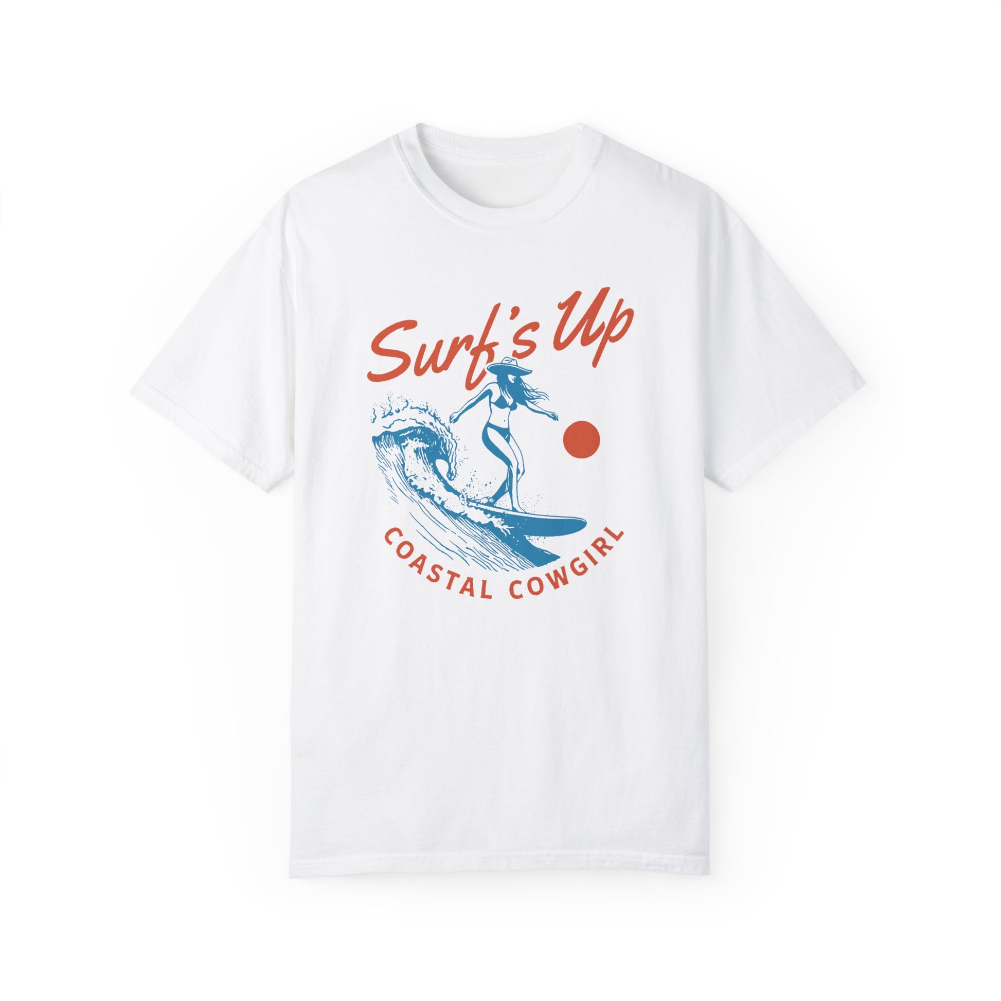 Trendy coastal cowgirl T-shirt with a western style, perfect for those who love the beach and surf culture. This garment-dyed unisex T-shirt is great for casual wear and can be accessorized for a semi-formal look. Ideal for adults who enjoy a relaxed fit and comfortable clothing. Suitable for beach vacations, summer celebrations, and casual outings.