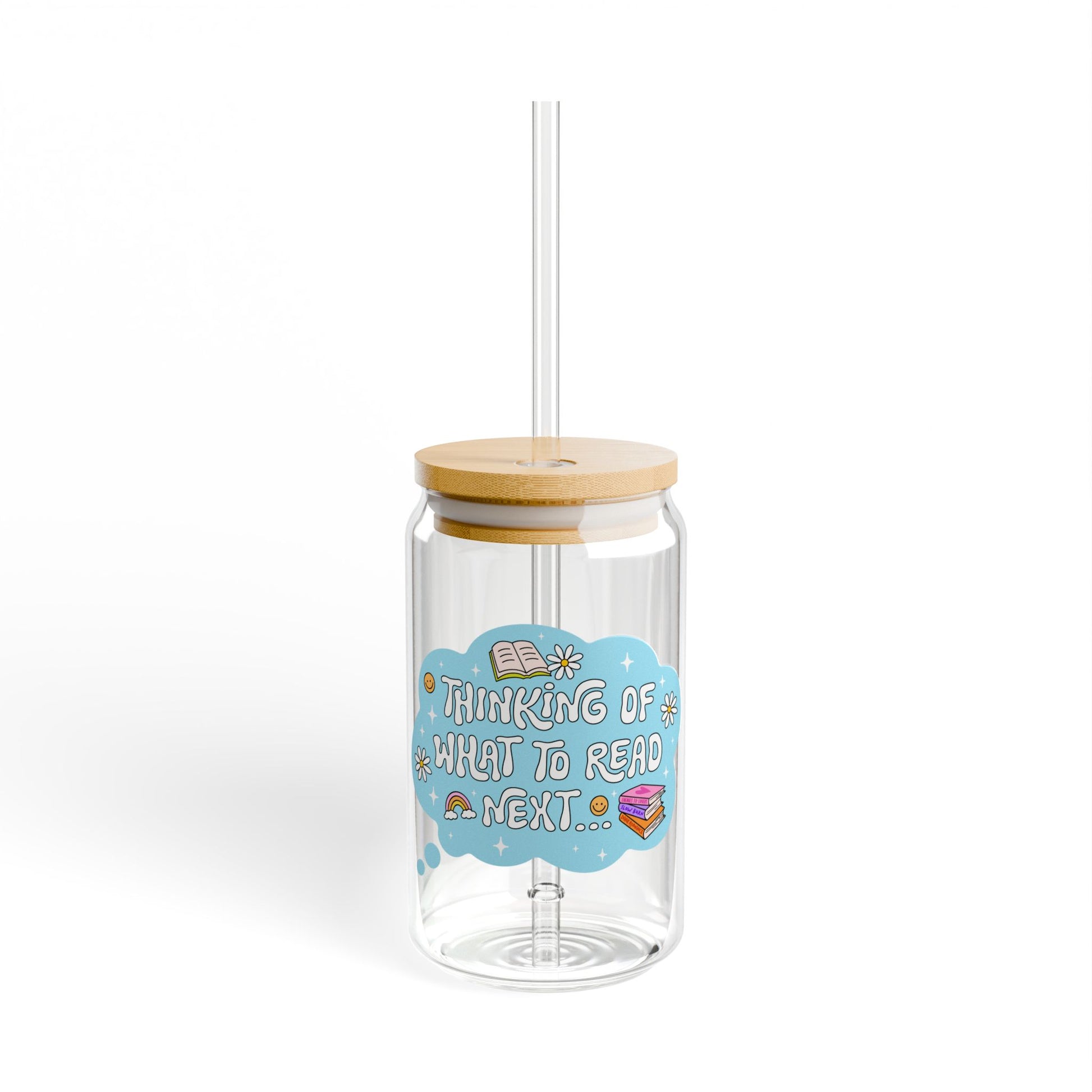 Stay stylish and bookish with our "Thinking of What to Read Next" glass cup, a 16 oz glass can cup perfect for sipping iced coffee while you ponder your next literary adventure. Featuring a sleek bamboo lid tumbler, this sipper glass makes a thoughtful gift for any book lover. Whether you’re enjoying a drink or contemplating your next read, this cup is the ideal companion for those who always have a good book on their mind.