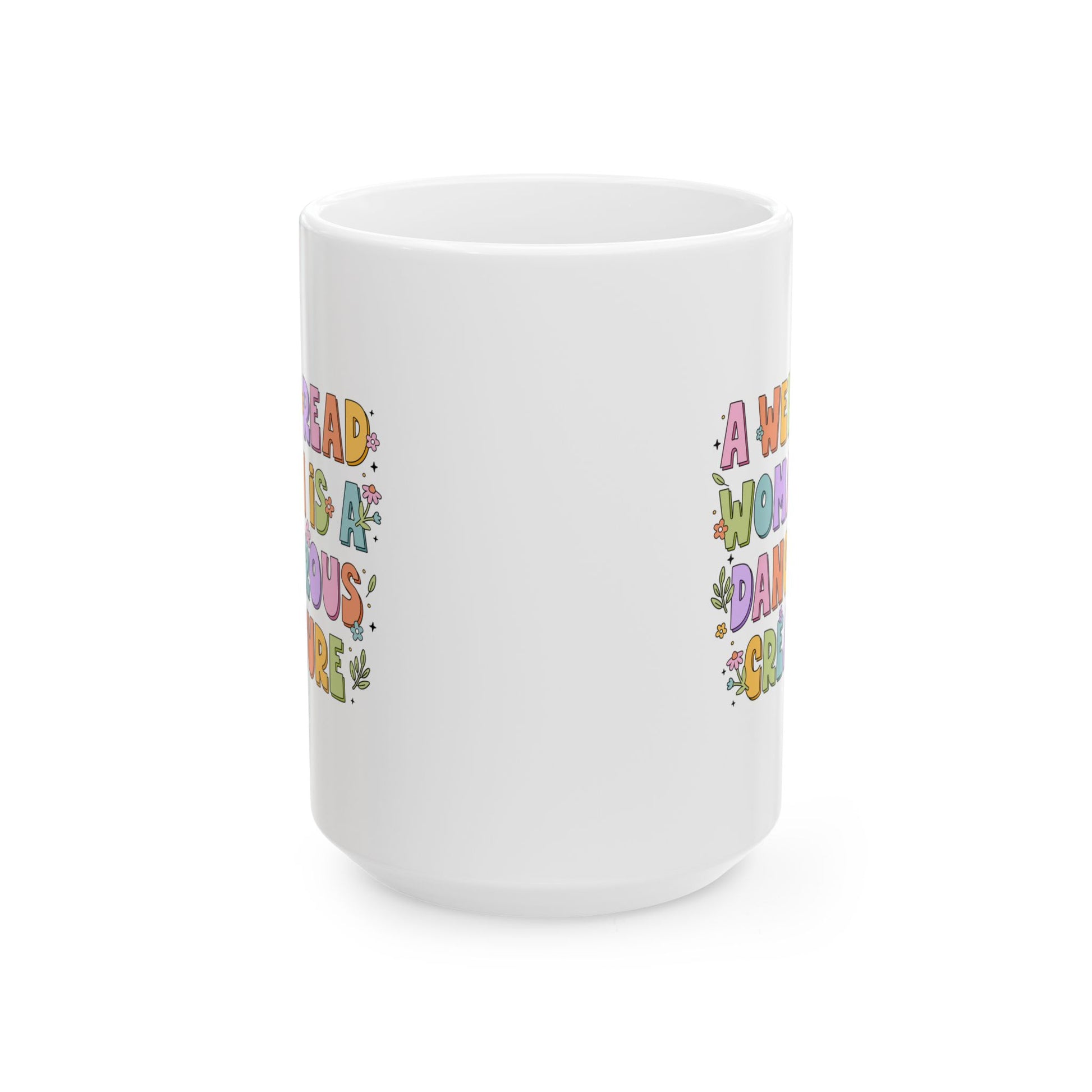 This "A Well Read Woman is a Dangerous Creature" mug is perfect for book lovers who embrace the power of knowledge. A thoughtful and empowering gift for readers who know that books are their strongest weapon.